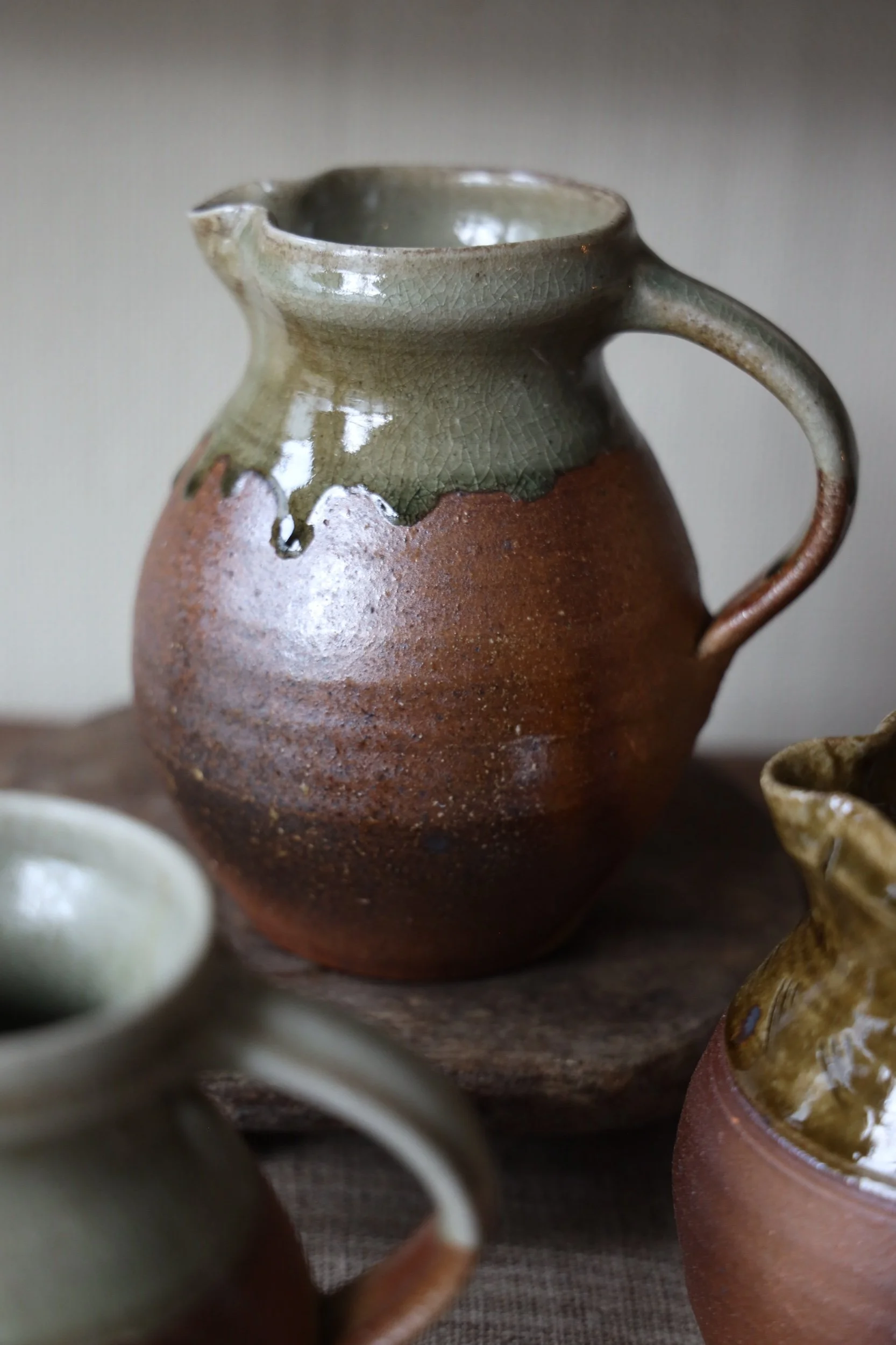 Hand crafted ceramic jugs by Cornish ceramicist John Webb, from Leach Pottery down in Cornwall.